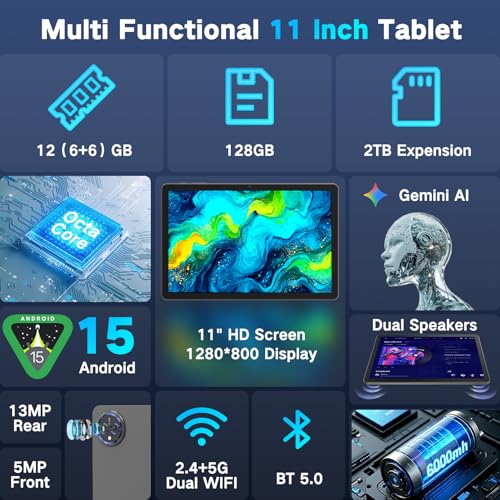 【Gran pantalla HD de 11 pulgadas – Visuales inmersivas para trabajar y jugar】Disfruta de cada detalle en L. a. gran pantalla táctil IPS HD de 11 pulgadas (1280 x 800), perfecta para ver películas, leer libros electrónicos, jugar o realizar múltiples tareas. L. a. pantalla más grande mejora L. a. productividad como una tableta de trabajo o tableta de aprendizaje, al tiempo que proporciona una experiencia de entretenimiento inmersiva como una tableta para transmitir TV y películas. Combinado con altavoces de doble caja, esta tableta de pantalla grande hace que los juegos, las videollamadas y el trabajo creativo sean más cómodos y atractivos para usuarios de todas las edades.
