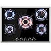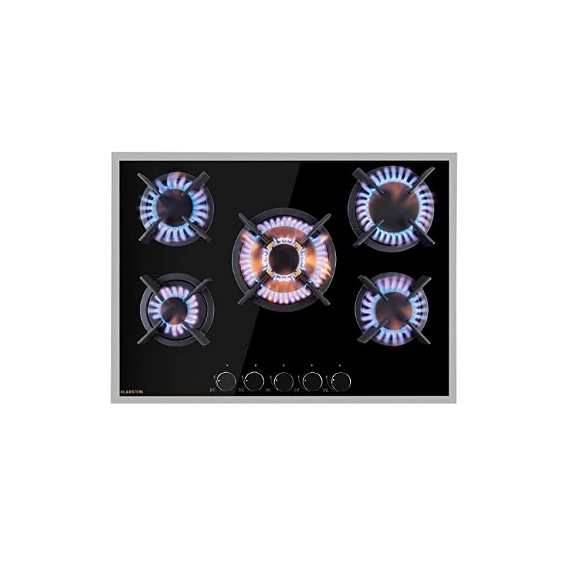 Klarstein Cocina de Gas Butano, Placa de Gas 5 Fuegos 10400W, Placa Vitroceramica Gas Integrada para Cocina, Placa Gas Butano de Diseño, Encimera Gas de Fogones con Base de vidrio y Acero Inoxidable