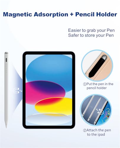 Lápiz para iPad de 11ª/10ª/9ª, lápiz capacitivo de carga rápida para i-Pad, rechazo de palma, sensibilidad de inclinación, compatible con i-Pad A16/10/9/8/7/6, Pro M4/13/12.9″/11″, Air M3/M2/5/4/3