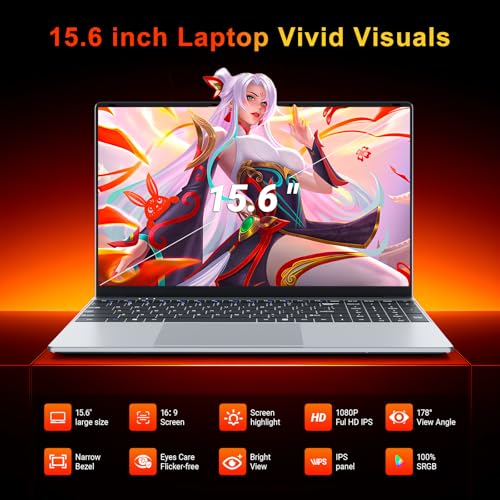 Pantalla IPS Full HD inmersiva: Experimente imágenes vibrantes en la espaciosa pantalla IPS FHD (1920×1080) de 15,6 pulgadas de este ordenador portátil. A diferencia de las pantallas estándar, la tecnología IPS garantiza que los colores permanezcan nítidos y consistentes con amplios ángulos de visión, lo que la hace perfecta para ver películas, colaborar en proyectos o revisar hojas de cálculo. Esta laptop de 15.6 pulgadas transforma tu experiencia visual en un viaje vívido, ya sea para trabajo o entretenimiento.