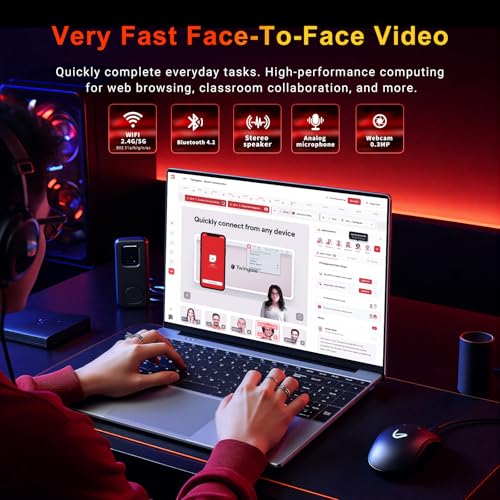 Paquete completo listo para usar: Esta computadora portátil llega lista para funcionar desde el primer momento. Preinstalado con Win 11 y optimizado para Office 365, puede sumergirse directamente en sus proyectos sin problemas de configuración. La cámara frontal integrada de 0.3MP, los altavoces estéreo y los micrófonos duales facilitan las videollamadas con familiares o reuniones virtuales con colegas. Combinando características esenciales con portabilidad, esta laptop es la solución todo en uno definitiva para los usuarios que buscan valor y comodidad.