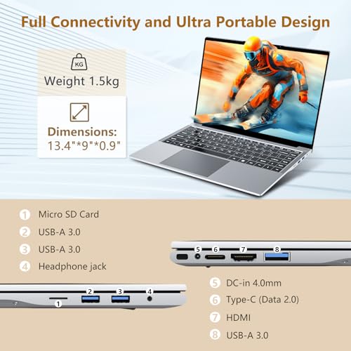 Portátil y listo para el trabajo: portátil i5 que pesa solo 3.3 lbs (aprox. 3.3 libras) y con un elegante diseño gris espacial, este netbook es fácil de llevar. Viene preinstalado con Win 11 Pro e incluye una batería de 38Wh, lo que hace que el núcleo i5 del portátil sea adecuado para el hogar, la escuela o el uso comercial sobre la marcha.
