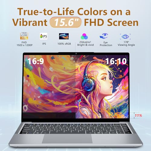 Pantalla FHD inmersiva de 15,6″: disfrute de detalles nítidos y más espacio vertical en la pantalla Full HD (1920 x 1200) con relación de aspecto de 16:10. El brillo de la computadora portátil de 250 nits proporciona una buena claridad para el trabajo, la transmisión de videos y la navegación web.