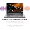 Maximiza tu entretenimiento. Aproveche al máximo su tiempo de pantalla con una pantalla HD de 14″ y una relación de área activa de hasta un 87%, la cantidad de pantalla en comparación con el tamaño de sus bordes. Dos altavoces Dolby Audio también transmiten audio rico y robusto.