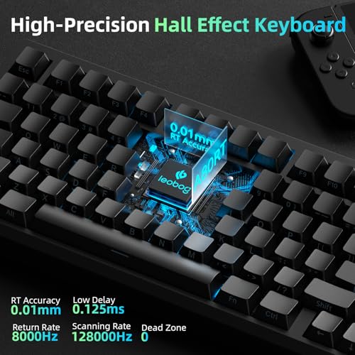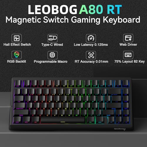 LEOBOE A80 RT Teclado para juegos con efecto Hall con cable, interruptor magnético de disparo rápido con accionamiento ajustable RT de 0.000 in, tasa de sondeo de 8000 Hz, teclado mecánico