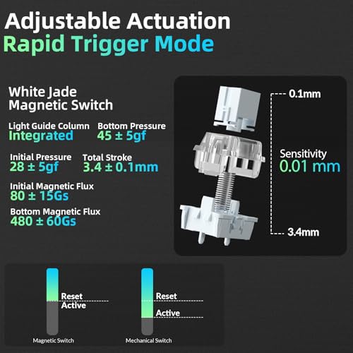 Teclado de efecto Hall con disparador rápido: equipado con interruptores magnéticos avanzados de efecto hall, el teclado para juegos LEOBOE A80 RT ofrece una latencia ultra baja de 0.000 in RT de 0.000 in y 0.125 ms, combinada con una tasa de sondeo de 8 KHz y una tasa de escaneo de 128 KHz. El punto de actuación ajustable de 0.004-zero.134 in te permite personalizar Los angeles sensibilidad del disparador para juegos FPS. Este teclado magnético elimina sin esfuerzo el retraso de entrada, por lo que es imprescindible para los entusiastas del teclado de juegos de PC de Los angeles competencia