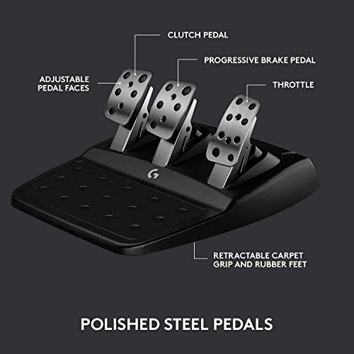 Disfruta del renovado diseño Logitech G con los angeles rueda de steel cepillado, los angeles cubierta de cuero cosida a mano y los pedales de steel pulido