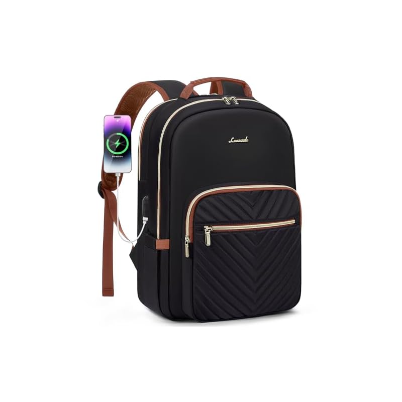 Especificaciones: LOVEVOOK Mochila para laptop para mujer, Negro Marrón, 17,3 pulg., Tradicional, moderno