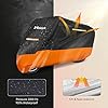 【Materiales de alta calidad】 La funda para moto impermeable Maizjok está hecha de tela Oxford 210D de alta resistencia, enduro, que es fuerte y resistente al desgaste. Tiene buena protección solar, protección UV, resistente al agua, protección contra la lluvia y la nieve, resistencia al polvo y resistencia a los arañazos, y puede hacer frente al mal tiempo exterior.