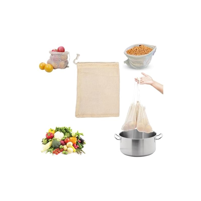 LAVABLES Y REUTILIZABLES: Nos preocupamos por tu comodidad y la sostenibilidad del medio ambiente. Por eso, nuestras bolsas de malla son fáciles de limpiar y reutilizar. Puedes lavarlas a mano o en la lavadora, y se secan rápidamente para que las puedas usar de nuevo en poco tiempo. Al elegir nuestras mallas de cocción, estás optando por una opción práctica y respetuosa con el medio ambiente, reduciendo el desperdicio de productos desechables y contribuyendo a un estilo de vida más sostenible