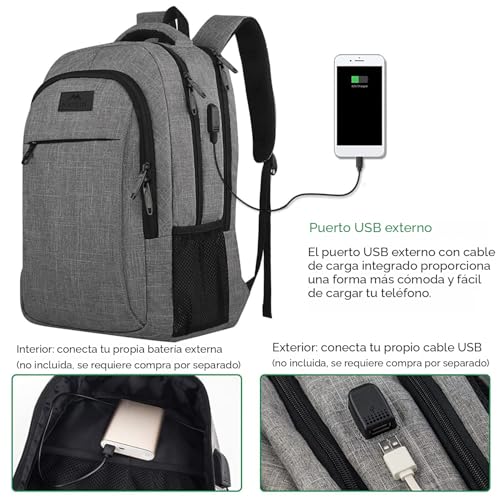 Especificaciones: MATEIN – Mochila de viaje para laptop, mochila empresarial antirrobo, delgada, resistente, puerto de carga USB, impermeable, para universidad o escuela, para notebooks de 15.6 pulgadas, gris