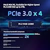 【Mayor Capacidad Expandible】El mini ordenador lleva incorporados 16GB de memoria RAM LPDDR4x de alta velocidad hasta 4266MHz, 512GB de almacenamiento, con una ranura para tarjeta Micro SD que se puede añadir por separado para ampliar el almacenamiento hasta 2TB y escalable para mayor velocidad (velocidad teórica de datos 3940MB) M.2 2280 SATA SSD & NVMe SSD hasta 4TB para PCIe3.0 x4.