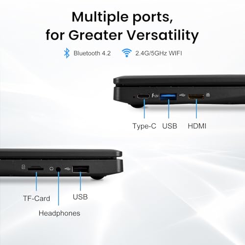 Diseño ultraportátil: pesa solo 26.81 oz, la mini computadora portátil es el compañero perfecto para la productividad y el entretenimiento en movimiento. Pantalla nítida e inmersiva: Disfrute de imágenes impresionantes y colores vibrantes en la pantalla IPS de 10.1 pulgadas de 1280×800. Experimenta cada detalle con claridad y precisión.
