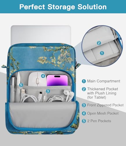 Especificaciones: MoKo Funda para laptop de 13.3 a 14 pulgadas, compatible con MacBook Pro M3/M2 de 14 pulgadas 2023, MacBook Pro de 13 pulgadas M2, Air 13.6 M3/M2, Tab S8 Ultra 14.6, funda de transporte con asa con