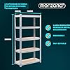ESTABILIDAD ADICIONAL – La estantería metálica del taller puede ser independiente o atornillado a la pared con el material de fijación integrado, lo que aumenta aún más la estabilidad. Ya sea para comestibles o herramientas, el estante almacena todo de forma segura para ti.