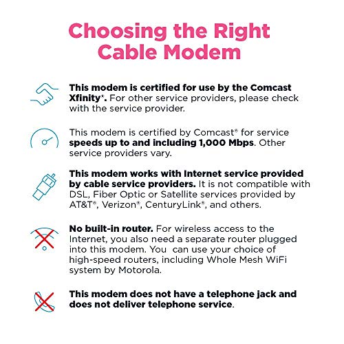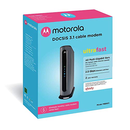 Especificaciones: MOTOROLA MB8611 DOCSIS 3.1 Cable módem con Ethernet 2.5G, aprobado para Comcast Xfinity (Gigabit), Cox y Charter Spectrum. (renovado)