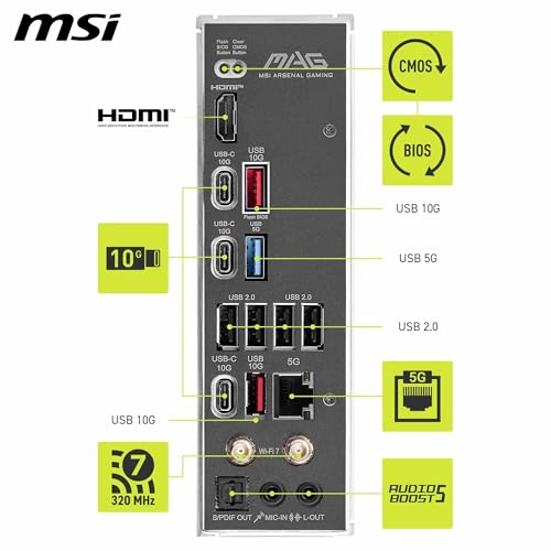 Especificaciones: MSI MAG B850 Tomahawk MAX WiFi Motherboard, ATX – Compatible con procesadores AMD Ryzen 9000/8000/7000, AM5-80A SPS VRM, DDR5 Memory Boost 8400+ MT/s (OC), PCIe 5.0 x16, M.2 Gen5, Wi-Fi 7, LAN 5G
