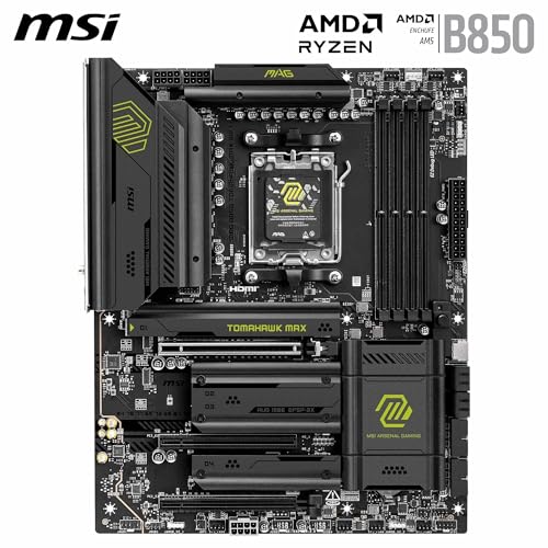 MSI MAG B850 Tomahawk MAX WiFi Motherboard, ATX – Compatible con procesadores AMD Ryzen 9000/8000/7000, AM5-80A SPS VRM, DDR5 Memory Boost 8400+ MT/s (OC), PCIe 5.0 x16, M.2 Gen5, Wi-Fi 7, LAN 5G