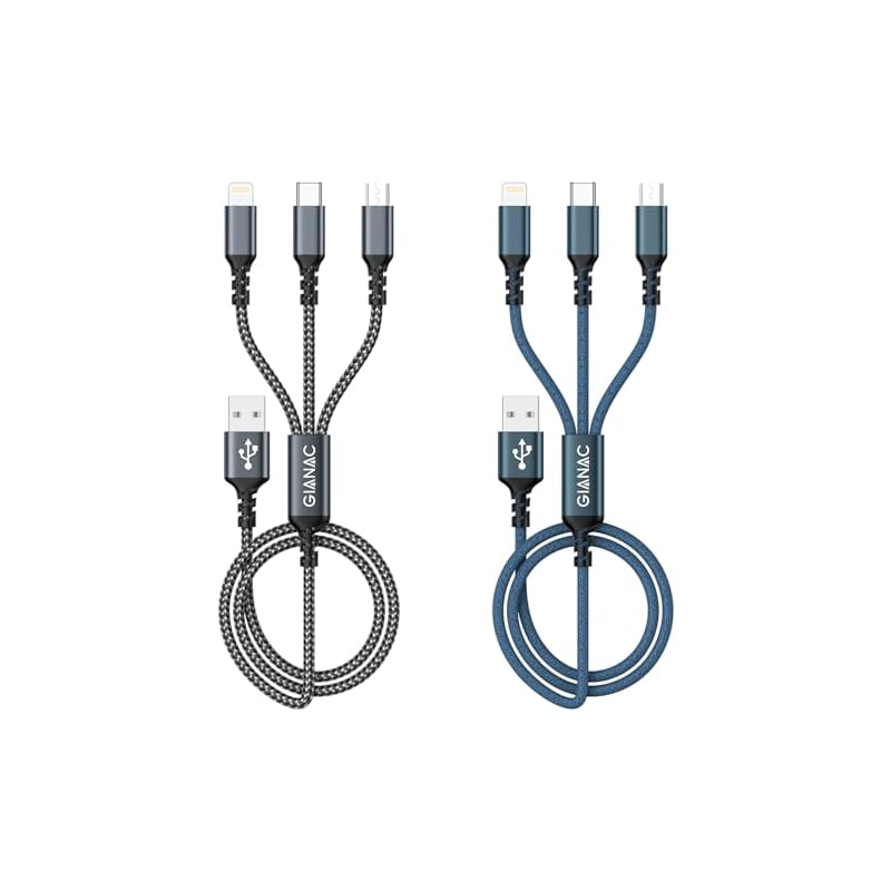 【Diseño optimizado】GIANAC Multi USB Cargador Cable uso Utiliza protección de cola de extremo de silicona, funda de aluminio + malla de algodón que prolonga la vida útil del cable de datos. Los conectores de aluminio 3D mejorados y una exclusiva tecnología de soldadura láser garantizan que las piezas metálicas no se agrieten y que la conexión sea más firme con una funda protectora.Muy adecuado para su uso diario.