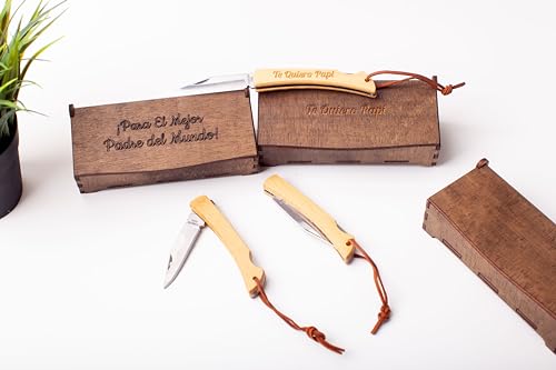 Navaja personalizada con tu nombre o mensaje ,Caja personalizado de madera Regalos, Olesea , Originales para Aniversario, San Valentín, Bodas, Cumpleaños dia del Padre *FABRICADA EN ESPAÑA Olesea by Bulat Family. Grabado láser Navaja con tu nombre o texto personalizado . Navaja con hoja de acero inox Caja de madera grabada con tu nombre