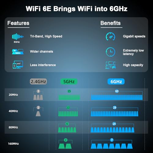 Velocidad de transmisión de tres bandas: el adaptador de red inalámbrico ofrece velocidades ultrarrápidas de hasta 5400 Mbps en el estándar WiFi 6E, proporcionando 2402 Mbps en las bandas de 6 GHz y 5 GHz, o 574 Mbps en la banda de 2.4 GHz para una conectividad perfecta. Ya sea viendo videos de transmisión de alta definición o jugando juegos 3A, se puede mantener una transmisión estable. Garantiza una mejor experiencia de usuario para ti