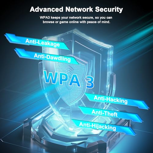 【Último protocolo de cifrado】Protege tus actividades en línea con el último estándar de seguridad Wi-Fi WPA3-SAE. Este adaptador de red USB WiFi 6E para PC cuenta con cifrado WPA3 avanzado, ofreciendo una mayor defensa contra varios tipos de amenazas cibernéticas, incluyendo fuerza bruta y ataques de diccionario fuera de línea, asegurando una experiencia de navegación segura y segura