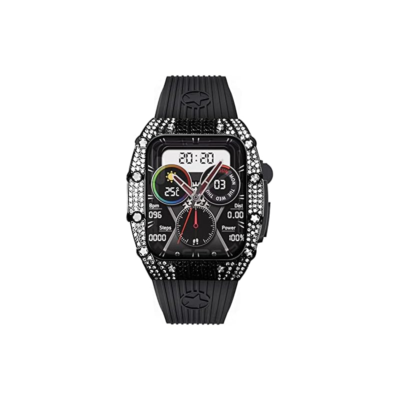 NIBYQ Renewed Premium Diamond Face Cover – Correa de silicona para reloj Apple Watch de 45 mm y 44 mm, correa de repuesto para iWatch Series 8 7 6 5 4 SE