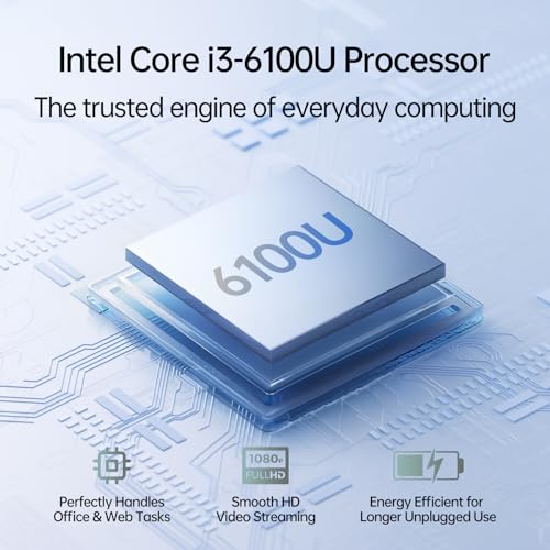 Potente rendimiento para tareas diarias: este ordenador portátil tradicional está equipado con un procesador Intel Core i3-6100U y 8 GB de RAM DDR4 rápida, manejando sin problemas la multitarea, el trabajo de despacho, la navegación web y la transmisión de medios. Experimente un rendimiento confiable y eficiente para todas sus necesidades informáticas fundamentales.