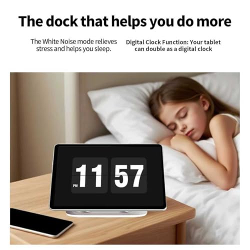 Base de altavoz estéreo de IA todo en uno: transforma tu tableta Jeazans en un concentrador multifuncional con la base de altavoz inteligente AI. Lo mantiene cargado y listo 24/7 y funciona como un altavoz de gran sonido para música que llena la habitación mientras las luces ambientales se sincronizan con tu música para una experiencia audiovisual inmersiva. Sumérgete en la relajación con 8 entornos de ruido blanco incorporados, o cambia al modo de salvapantallas de reloj AUMI AI OS para usarlo como reloj digital. Funciona como un marco de fotos electrónico en la nube, mostrando tus recuerdos favoritos. Combinando carga, entretenimiento y utilidad, esta base redefine los accesorios para tabletas.