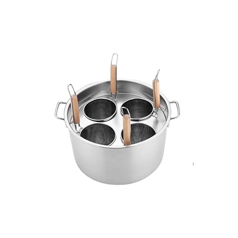 4. Práctico diseño que ahorra espacio: la tapa de la olla viene con un mango seguro y el juego incluye una práctica cesta de embudo de inserción, lo que permite cocinar simultáneamente varios platos sin ocupar espacio adicional.