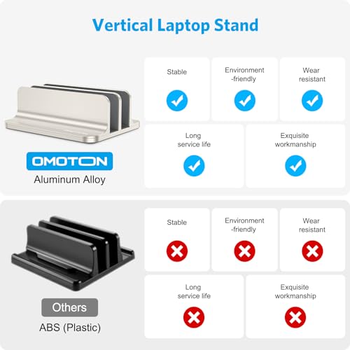 OMOTON Soporte vertical para laptop [versión doble actualizada], soporte de aluminio para Mac Book de escritorio con tamaño de base ajustable, se adapta a todos los Mac Book, Surface, Chrome Book y