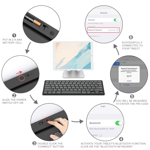 Batería de larga duración: requiere 2 pilas AAA, no incluidas. El teclado utiliza un diseño de ahorro de energía y modo de suspensión automático para permitir hasta 6 meses entre cambios de batería