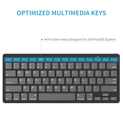 Solo compatible con iOS y iPadOS (14.5 o superior), para iPad A16 de 11ª generación 10.2 (9ª/8ª/7ª generación), iPad Pro 13/12.9/11 pulgadas, iPad Air 13/11 pulgadas, iPad Air 10.9 pulgadas (5ª/4ª generación), iPad mini 6 / 5 etc. (AVISO: Las teclas de función no son totalmente compatibles con otros sistemas)