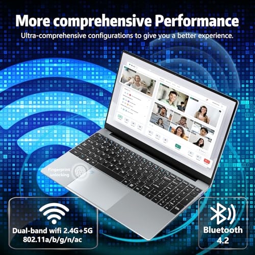 Especificaciones: Ordenador Portátil 15,6 pulgadas, 16 GB de RAM 512 GB de SSD CPU Celeron N5095 PC Portatil, 1920 x 1080 FHD Touch ID WiFi doble banda Windows 11 Pro Laptop, teclado retroiluminado de tamaño completo