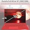 Especificaciones: Ordenador Portátil 16 Pulgadas Celeron N5095 Up to 2.9Ghz, Portátil Win 11 con 5G WiFi 12+512GB SSD Expansión 1TB, BT 4.2 Mini Puerto Multimedia Portatiles Ventilador Refrigeración 1920*1200 FHD-Rojo