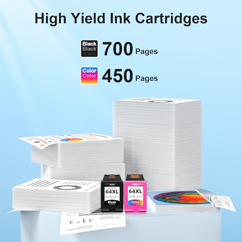 Cartucho de tinta 64XL para hp64xlblack y paquete combinado de colour: incluye 1 cartucho de tinta negra hp 64xl y 1 cartucho de tinta a colour 64xl para impresoras hp, un paquete de dos de alto valor con resultados de tinta más reales y de aspecto más herbal y texto impreso más nítido para impresión ininterrumpida.