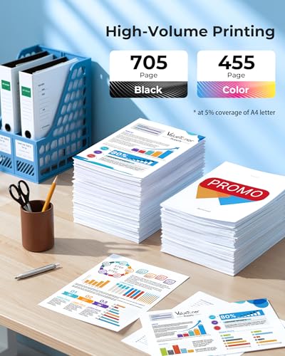 Alto rendimiento y duradero: relleno de tinta de alta calidad para proporcionar 705 páginas para el cartucho de tinta negra 67XL y 445 páginas para el cartucho de tinta de color 67XL. (5% coveragae* tamaño de papel A4)