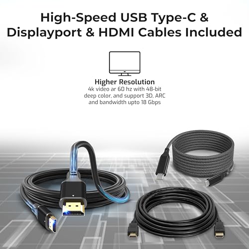 Alimentación: Adaptador de corriente 130 vatios CA 120/230 V (50/60 Hz). Interfaz de acoplamiento: USB-C. Cable incluido: 1x SuperSpeed USB-C cable (3. 3 pies).