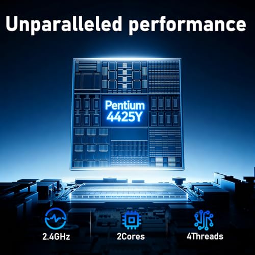 Rendimiento multitarea aguado: con un procesador Intel Pentium 4425Y y Windows 11 Pro preinstalado, este portátil 2026 ofrece celeridad de respuesta para las tareas diarias. Ya sea que se utilice como una computadora portátil para estudiantes para la universidad, una computadora portátil de trabajo para negocios o una computadora doméstica, maneja múltiples aplicaciones de manera eficiente sin ralentizar