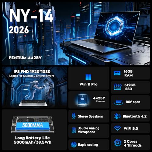 Rendimiento multitarea fluido: con un procesador Intel Pentium 4425Y y Windows 11 Pro preinstalado, este portátil 2026 ofrece velocidad de respuesta para las tareas diarias. Ya sea que se utilice como una computadora portátil para estudiantes para la universidad, una computadora portátil de trabajo para negocios o una computadora doméstica, maneja múltiples aplicaciones de manera eficiente sin ralentizar