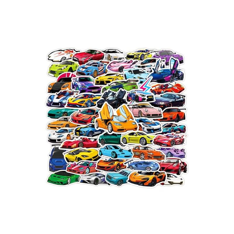 Pegatinas de auto para niños, 50 calcomanías de coche deportivo y de carreras, impermeables, adecuadas para botellas de agua, portátiles, monopatines, cascos y fundas de teléfono