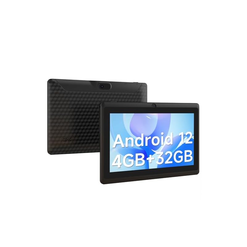 Especificaciones: PEICHENG Tableta Android 12 de 7 pulgadas, 4 GB de RAM, 32 GB ROM, procesador de cuatro núcleos de 1.5 GHz, cámara dual, pantalla IPS HD de 1024 x 600, expansión de 512 GB, WiFi, BT, tableta de 7