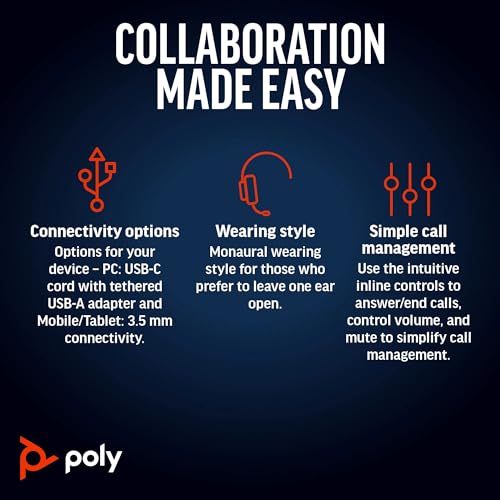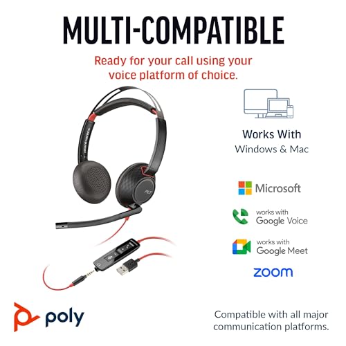 Plantronics Poly Blackwire 5220 Auriculares estéreo USB-C + conector de 0.138 in + adaptador USB-C/A