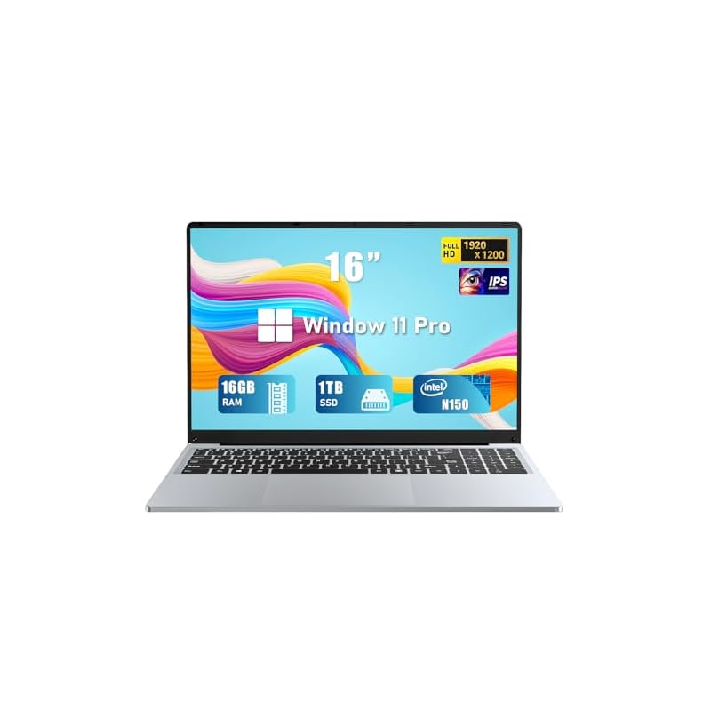 Especificaciones: Portátil para juegos, computadora portátil de 16 pulgadas con Windows 11 Pro, procesador Intel N150 de 12ª generación (hasta 3.6 GHz), 16 GB de RAM 1 TB SSD, teclado retroiluminado, FHD 1920 x