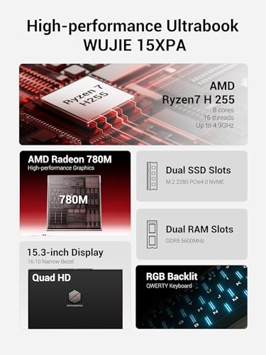 Portátil para juegos de metal de 15.3 pulgadas, 32 GB de RAM DDR5, SSD PCIe4.0 de 1 TB, pantalla WQXGA 2560 x 1600, procesador AMD Ryzen H255, retroiluminación RGB, computadora portátil para