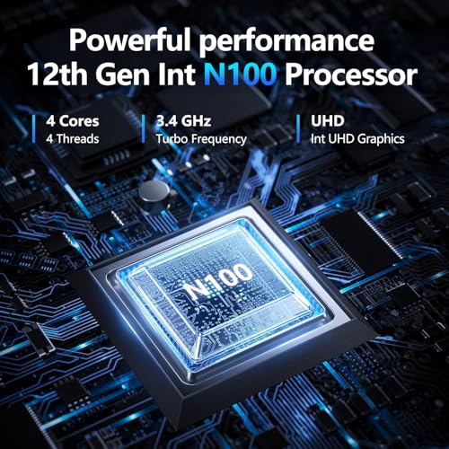 Rendimiento inigualable: alimentado por un procesador Celeron N100 de 12ª generación con 4 núcleos y 4 hilos, este portátil garantiza un funcionamiento perfecto a velocidades de hasta 3.4 GHz, ofreciendo un nivel de rendimiento inigualable, ya sea para trabajar o jugar.