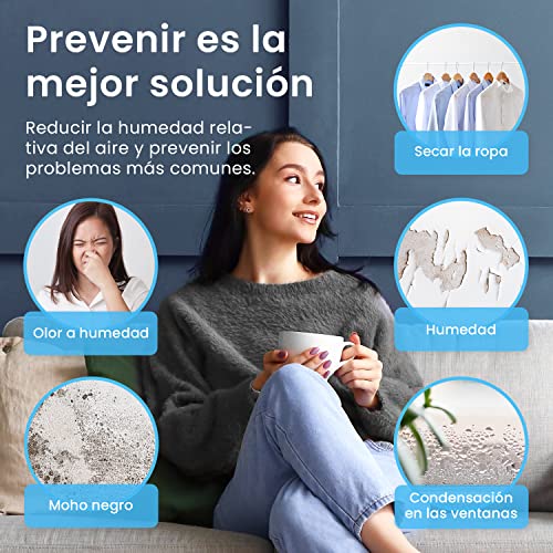 Drenaje continuo y sensor de humedad: El tanque de agua de 1.8L se cierra automáticamente cuando está lleno evitando fugas. También podrá drenar continuamente el agua gracias a la manguera de drenaje incluida. Elimine la humedad y la condensación de su hogar y seque más rápido su ropa sin preocupaciones.