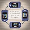 El pulsioxímetro con pantalla LCD que gira automáticamente 90° y dígitos grandes y fáciles de leer también muestra la frecuencia cardiaca en forma de onda de pulso y de barra.