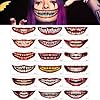 Especificaciones: Qpout 18 piezas Tatuajes de cara de Halloween, tatuajes temporales de maquillaje de broma de Halloween para adultos, Calcomanías de tatuajes de boca grande de payaso aterrador