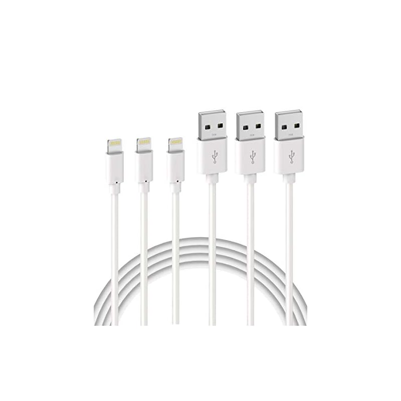 CABLE BLANCO LARGO — Pack de 3, cable de 2 m satisfará todas sus necesidades diarias de conectividad, la longitud de línea suficiente le permite moverse libremente incluso cuando se carga, no tendrá ningún impacto en la velocidad de transmisión. Incluso si estás acostado en el sofá, no tienes que preocuparte por la distancia de la potencia